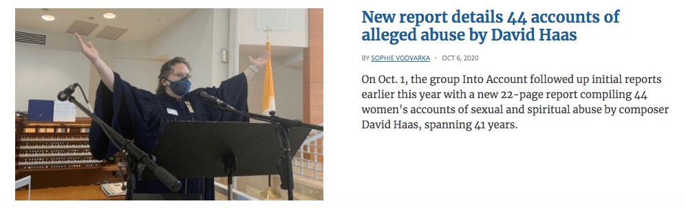 National Catholic Reporter published two articles I am proud to share about women who experienced abuse in the Catholic Church: New report details 44 accounts of alleged abuse by David Haas & the follow-up article, St. Catherine’s report sparks calls for accountability from survivors of alleged abuse by David Haas. This reporting is some of the most important I’ve ever done. I’m incredibly grateful to have earned the trust of the women who shared their stories. The sex abuse crisis in the Catholic Church is not over.