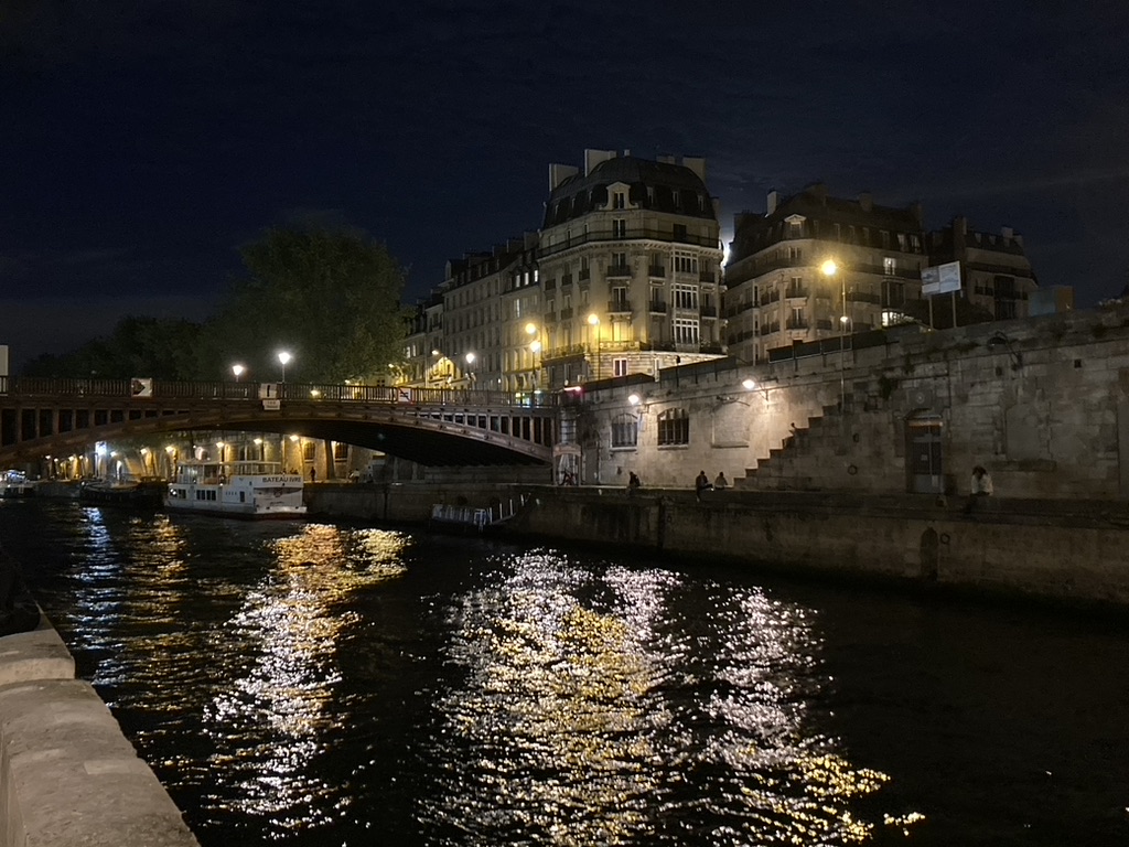 For some reason, in my early 20s, while I was traveling around Europe a lot — a common memory I have is hanging out along rivers drinking beers. It wasn’t really planned when Patrick and I did it in Paris, at night, next to Notre Dame. But it did follow a day when I was feeling nostalgic already, having stumbled upon the fabled English bookstore Shakespeare and Sons for the first time (at night, thankfully, when the hoards of tourists were gone.)